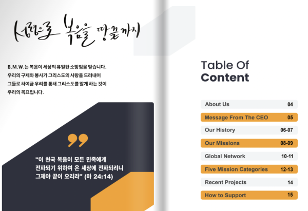 해외선교 2023 B.M.W. 브로셔 페이지 정보 작성자 BMW미션쪽지보내기 메일보내기 자기소개 아이디로 검색 전체게시물쪽지보내기 메일보내기 자기소개 아이디로 검색 전체게시물 작성일2023.11.10 08:42 조회수 8,702 글씨크기 + - 본문 아래 링크를 클릭하시면 보실 수 있습니다. https://online.fliphtml5.com/lloiy/mzlc/ 추천 0 페이스북 공유 트위터 공유 이전글진정한 행복이란? 23.11.22 다음글의료선교사를 양성을 위한 전문웨비나-한국연합회 보건부 23.10.27 댓글 0 댓글목록 등록된 댓글이 없습니다. 목록
