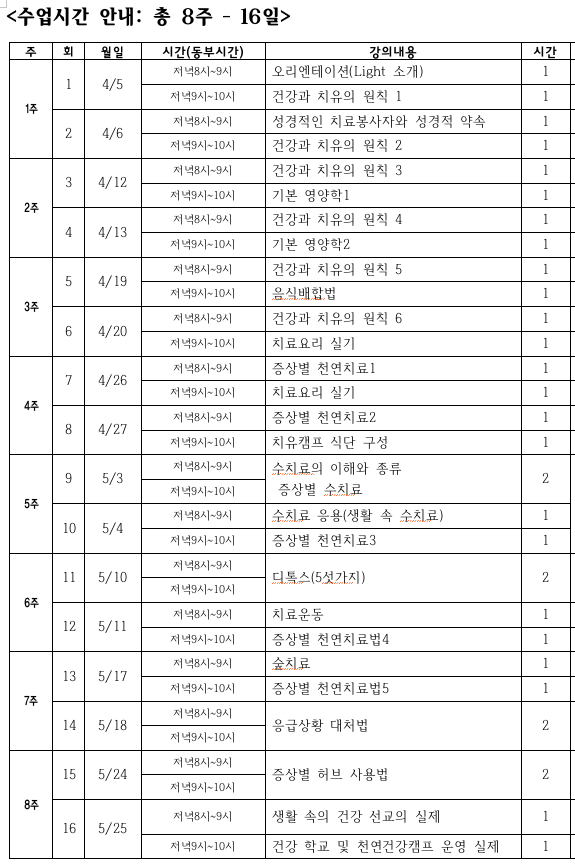 1) 8주간 총 32시간 교육으로 교회내에서 활동할 수 있는 치료봉사자로 교육해드립니다.