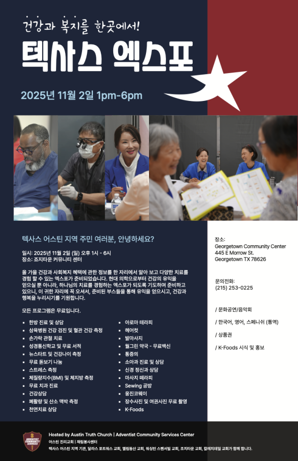 특별집회 오스틴 텍사스, 건강엑스포(오스틴 진리교회)