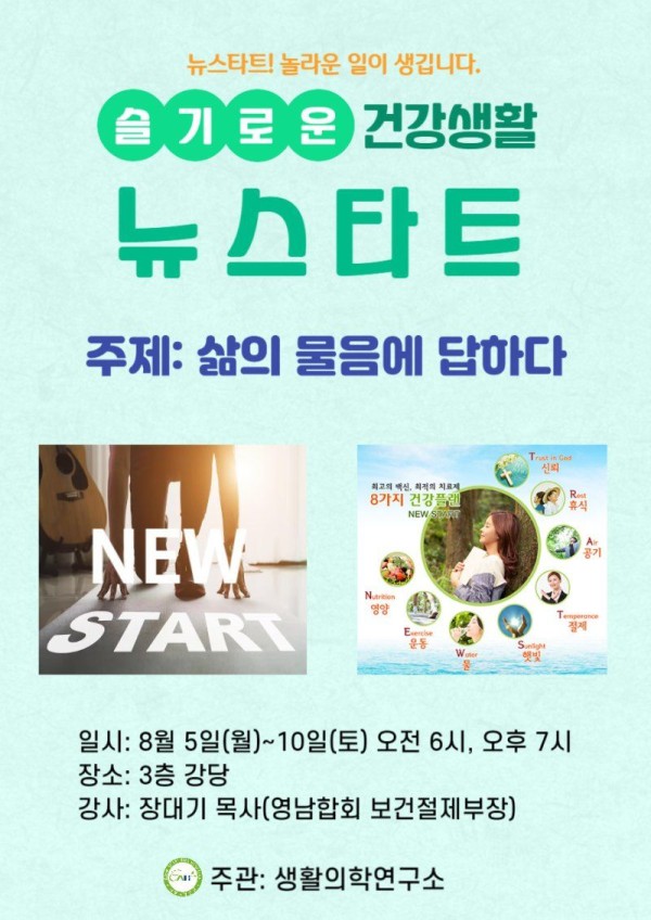 기타 에덴요양병원 뉴스타트 주간 [주제: 삶의 물음에 답하다 by 장대기 영남합회 보건절제부장]