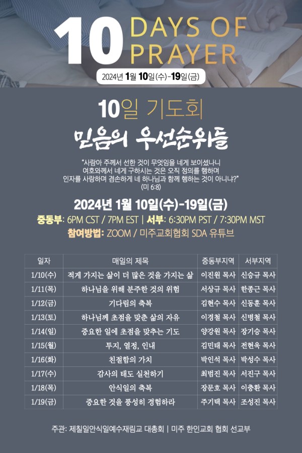 협회 대총회주관 10일 기도회(10 Days of Prayer)
